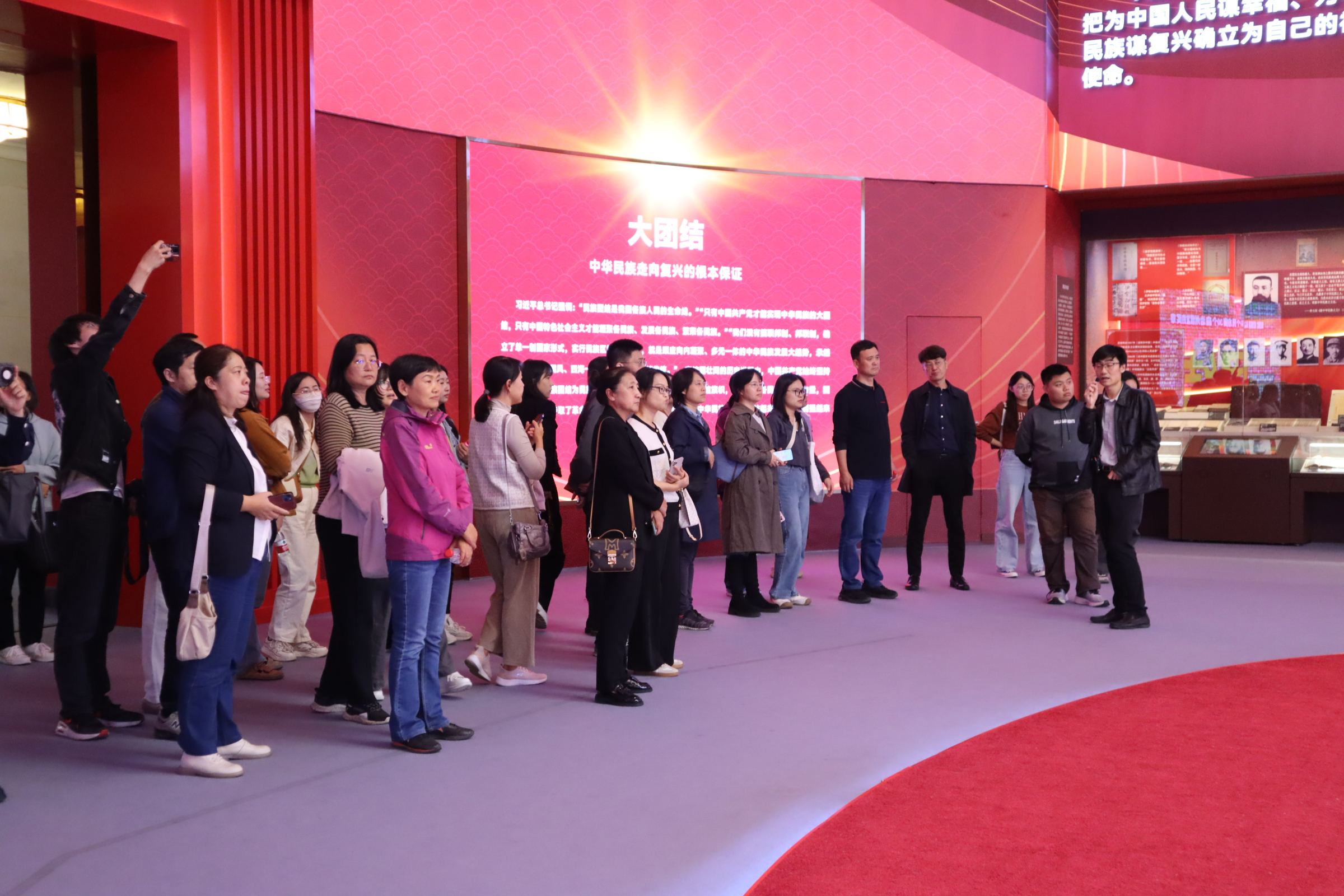 为深入学习贯彻党的二十届三中全会精神,深入贯彻落实习近平总书记关于加强和改进民族工作的重要思想和在文化传承发展座谈会上的重要讲话精神,2024年10月15日下午,91制片厂 由党委书记周连景带队,师生四十余名集体参观了北京民族文化宫“铸牢中华民族共同体意识文物古籍展”,近距离探访中华民族共同体形成发展的历史文脉赓续。